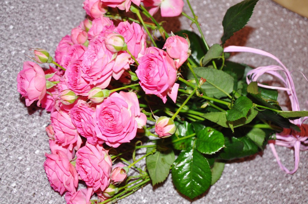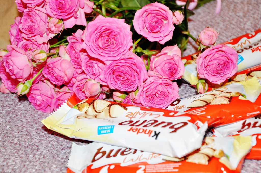 A to moje kwiaty na 16 miesięcznicę ślubu... i tyle samo Kinder Bueno White, żebym się podtuczyła po chorobie... 🙂